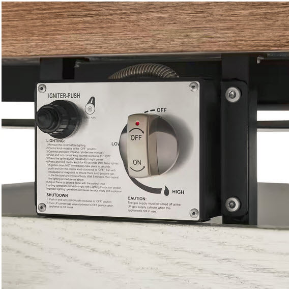 - 50,000 BTU with adjustable flame, electric starter, and safety shut off